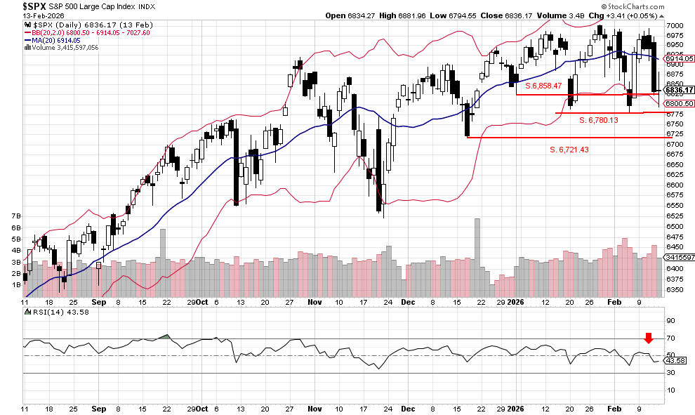 Stocks finished mostly higher on Friday, but the major averages still finished lower across the board with week-to-date losses wider than 1.0%. Mega-cap stocks performed poorly, while the recent fears of AI disruption that have weighed heavily on software names rippled into some other pockets of the market.